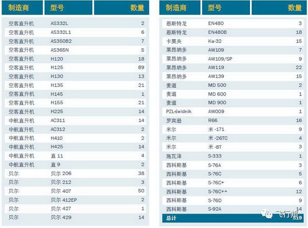 运营涡轮直升机数量最多的企业分别为:中信海直(68架)、中国飞龙通航(30架)、上海金汇通航(26架)、国网通航(24架)以及南航通航(22架)。